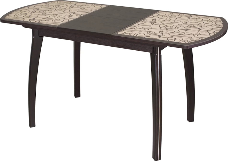 Кухонный стол «Чинзано ПО СТ-2» (07) раскладывается при помощи механизма бабочка. Столешница имеет стеклянное покрытие с абстрактным рисунком. Деревянные ножки обладают полуизогнутой формой, которая добавляет столу изящества.