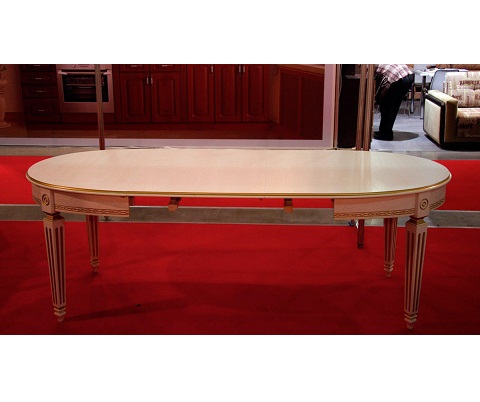 Предусмотрена наценка на эмали: Тон 1, Тон 3, Выбеленный тон, Тон слоновая кость, а также на все варианты цветов "с патиной".Возможен вариант изготовления стола с резными ножками "Люкс".Механизм раскладки синхронно-раздвижной. Вкладыш "ручной".Гарантия 18 месяцев.