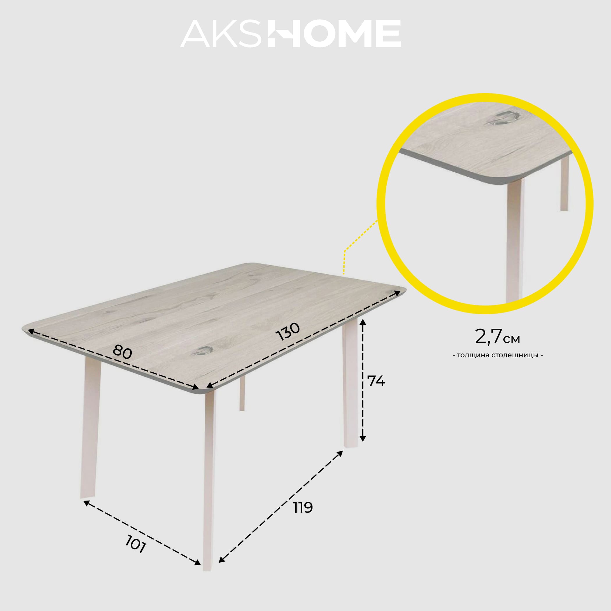 Стол «МАЙОН» 130*80*74, дуб беленый/белый (ПР-2 DSW (Т27) (02) КС-60)