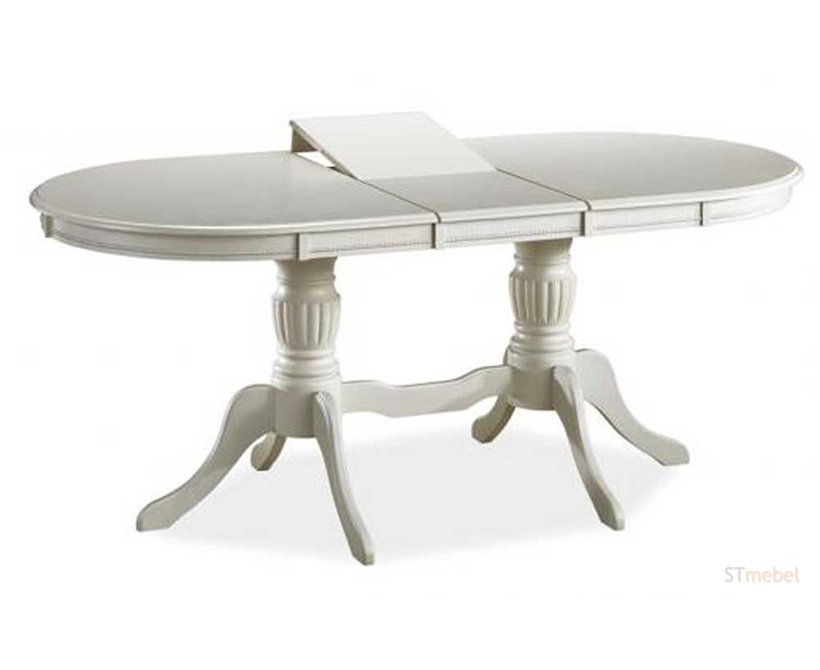 Обеденный стол «Аnjelica bianco» выполнен в модном цвете экрю. Материалом изготовления служит натуральный массив.