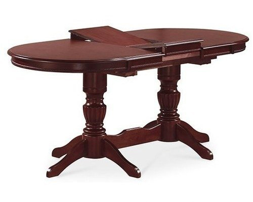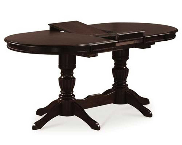 Обеденный стол «Anjelika» изготовлен из натурального дерева. Возможны два варианта цвета – темный орех и черешня античная. Модель способна раскладываться, увеличиваясь в размере, и становиться полноценным местом для трапезы.