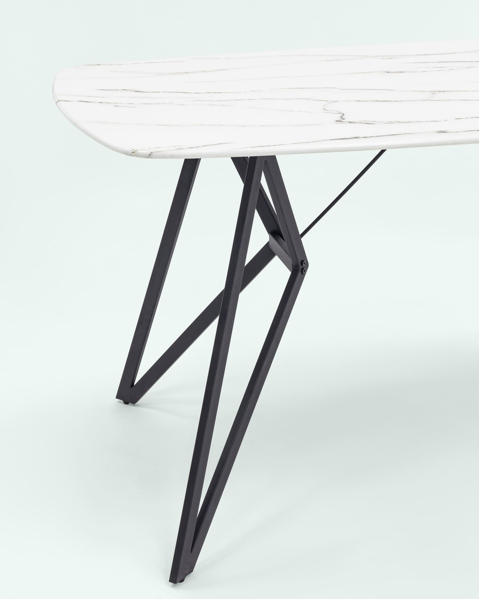 код 114509Белая столешница контрастирует с черным геометричным металлическим основанием.