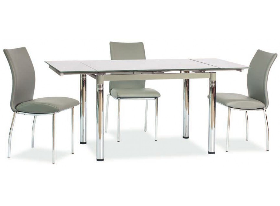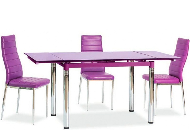 Стол «GD-018» может быть выполнен в следующих цветовых решениях: фиолетовый, темно-бежевый, серый, черный. Модель обладает раскладным механизмом. Столешница прямоугольной формы изготовлена из стекла.