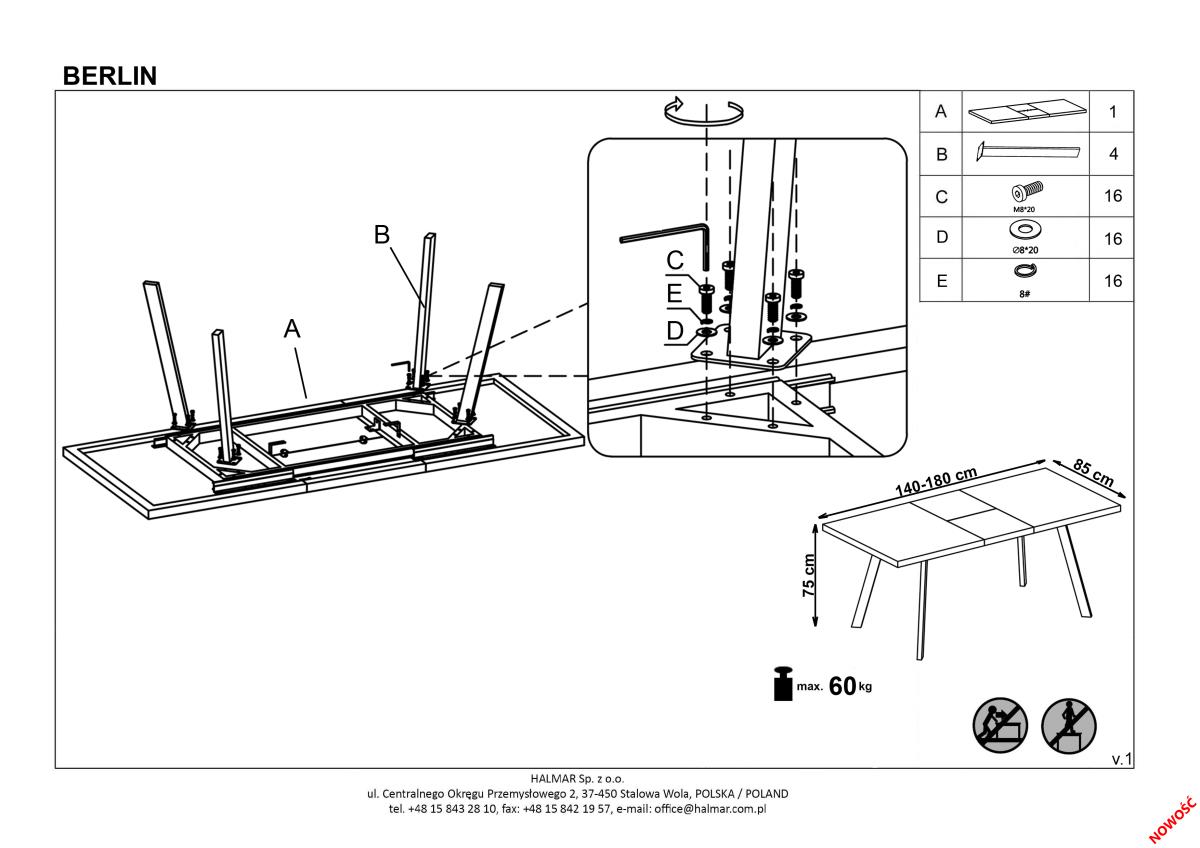Стол обеденный «Halmar BERLIN» раскладной (орех/черный)