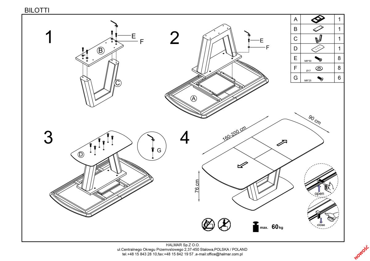 Стол обеденный «Halmar BILOTTI» раскладной (темно-серый/орех)