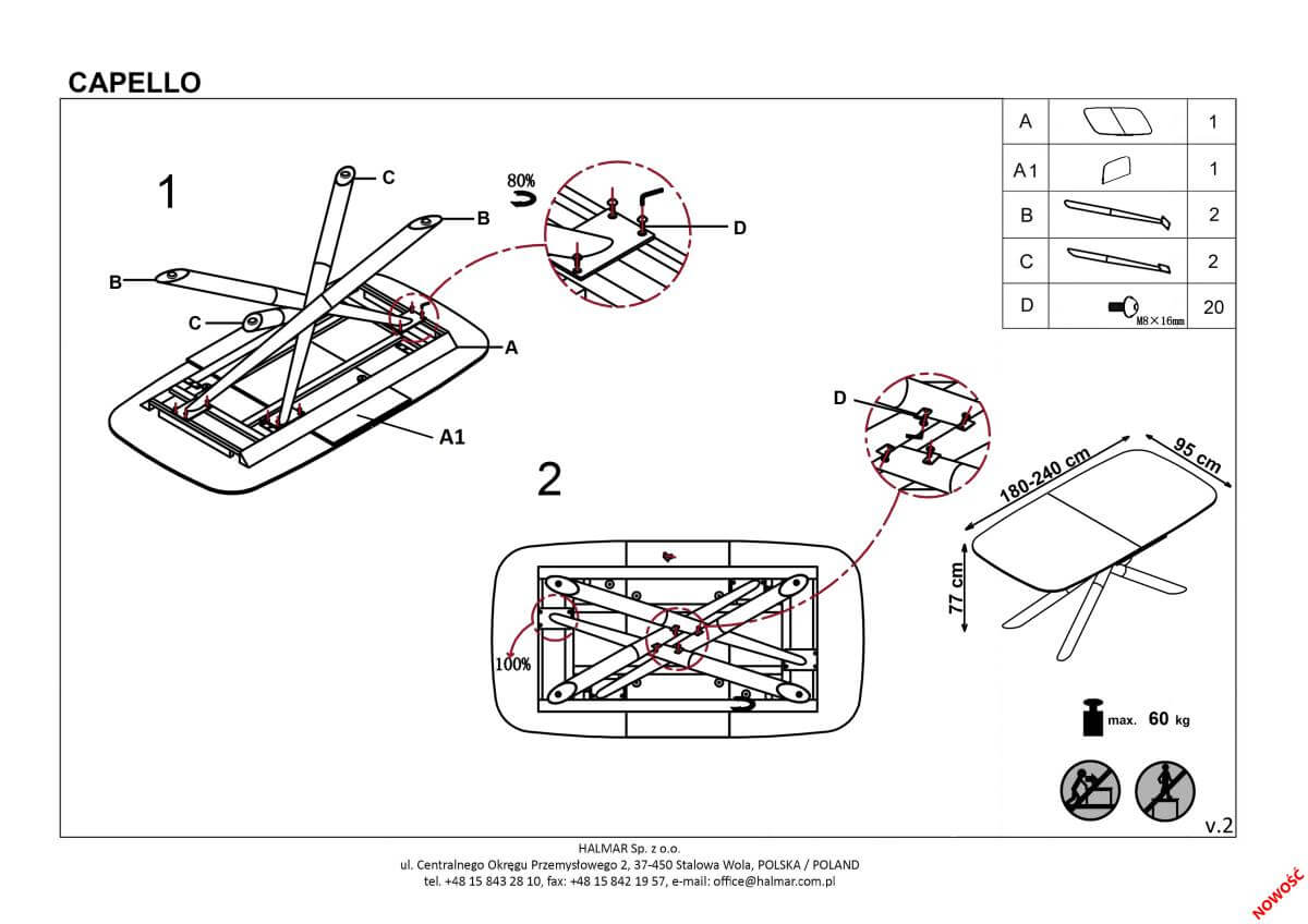Стол обеденный «Halmar CAPELLO» раскладной (темно-серый/черный)