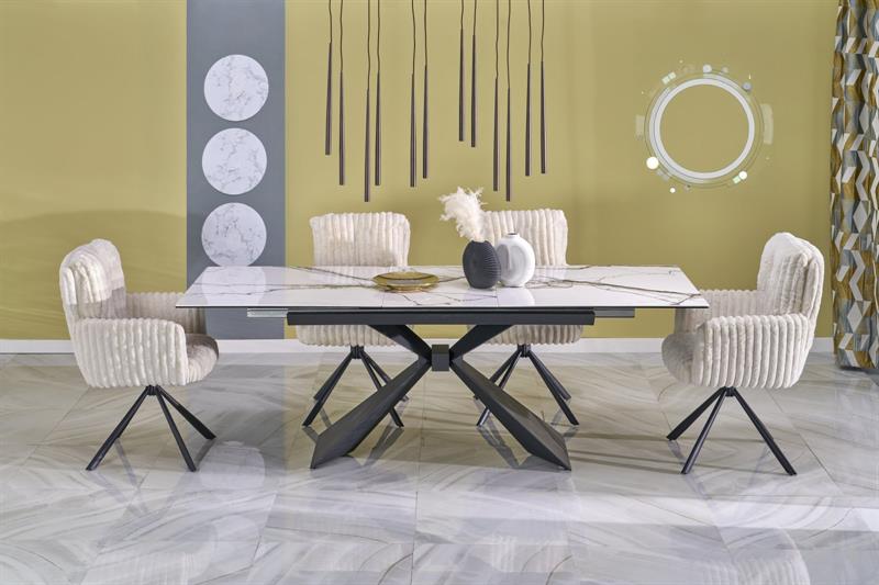 Стол обеденный «HALMAR LUCIANO» белый мрамор/черный 180-230/90