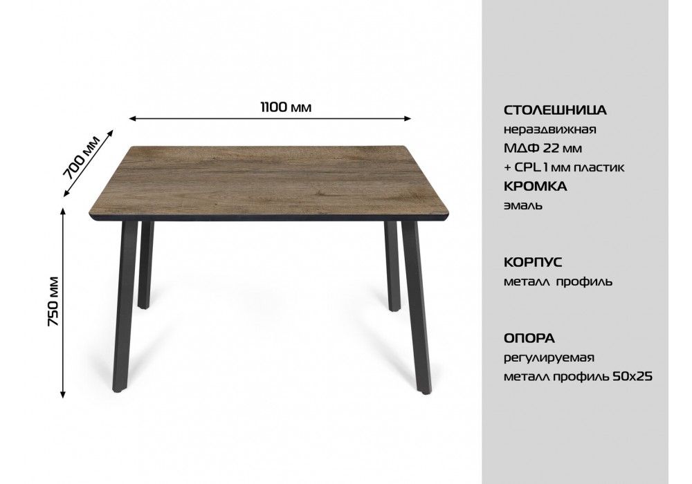 Стол обеденный «Милан 01» 1100х700 МДФ+пластик кромка эмаль (пиетра грей)