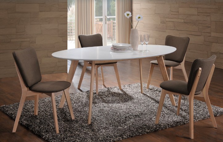 Обеденный стол обладает овальной столешницей, выполненной из прочного МДФ. Материалом каркаса служит натуральное дерево, отличающееся надежностью и долгим сроком службы. По желанию покупателя стол может быть представлен в белом тоне и в цвете белый дуб.