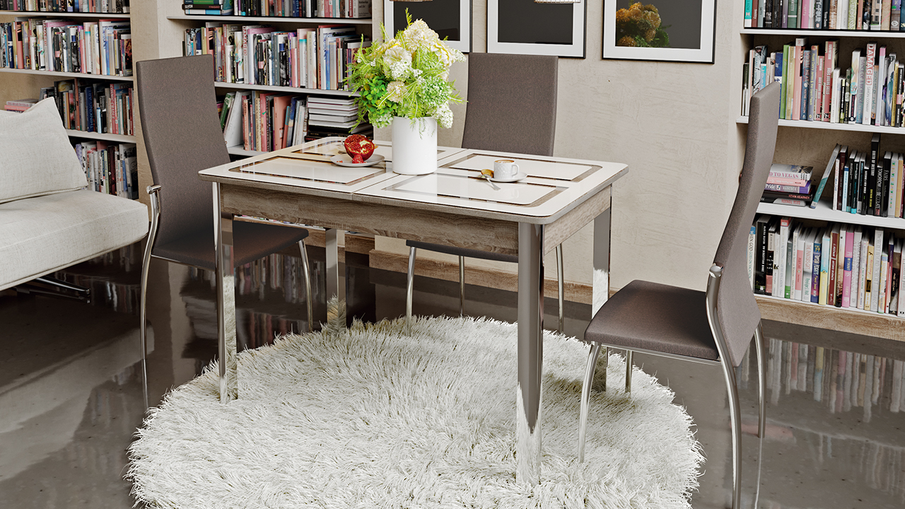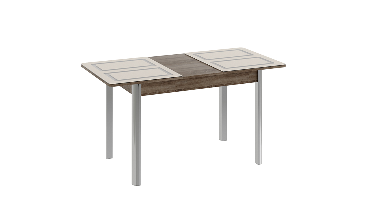 Стол обеденный на металлических ножках «Палермо» (Дуб Сонома трюфель/Стекло бежевое с рисунком)