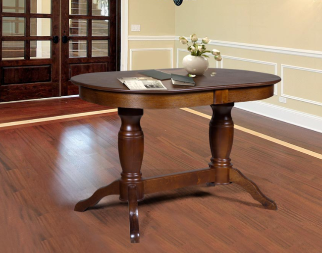 Обеденный стол «Пан» благодаря раздвижной овальной столешнице и фигурным ножкам создаст уют и комфортную обстановку в вашем доме. Ножки модели изготовлены из массива ольхи, а столешница выполнена из МДФ высочайшего качества. Раздвижная система стола оснащена современной фурнитурой, отличающейся надежностью и долгим сроком службы.