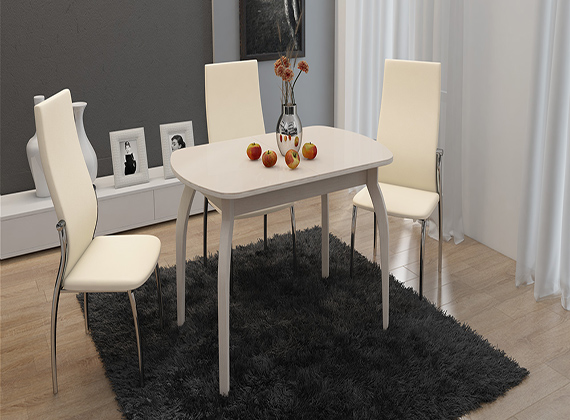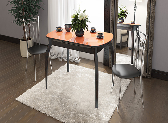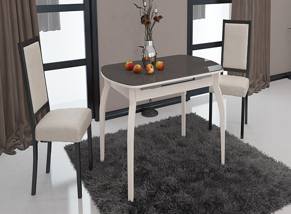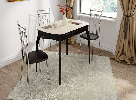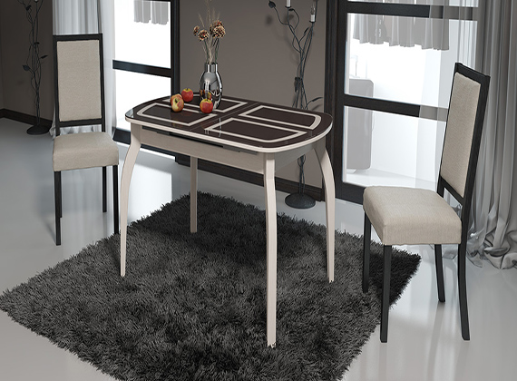 Стол обеденный раздвижной со стеклом на деревянных ножках «Милан»