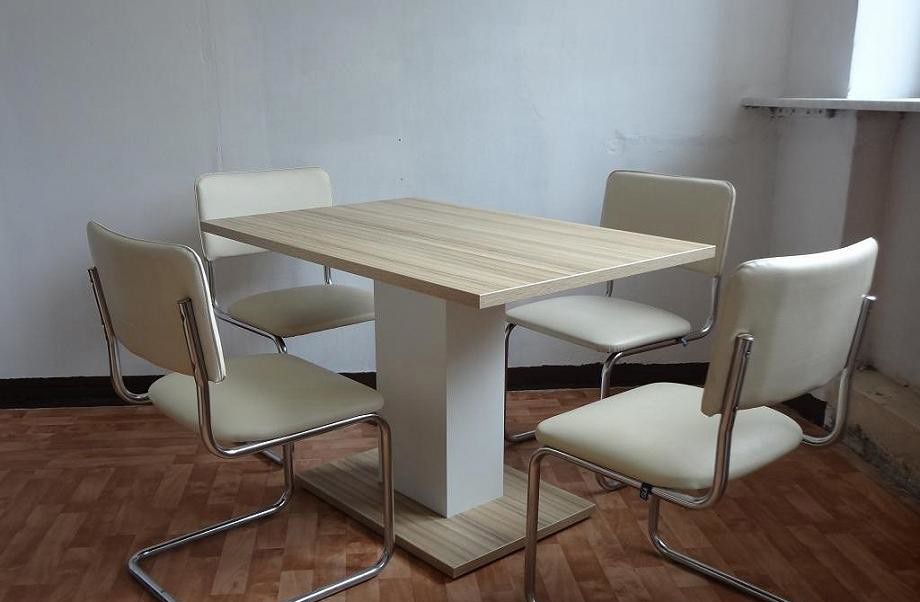 Обеденный стол в белом цвете отлично впишется в кухню любого стиля. Стол подойдет для удобного размещения четырех человек. Массивная прямоугольная столешница крепится на ножку-колонну с прочной подставкой, которая обеспечивает устойчивость стола. Модель изготовлена из качественных и надежный материалов, потому будет служить долго.