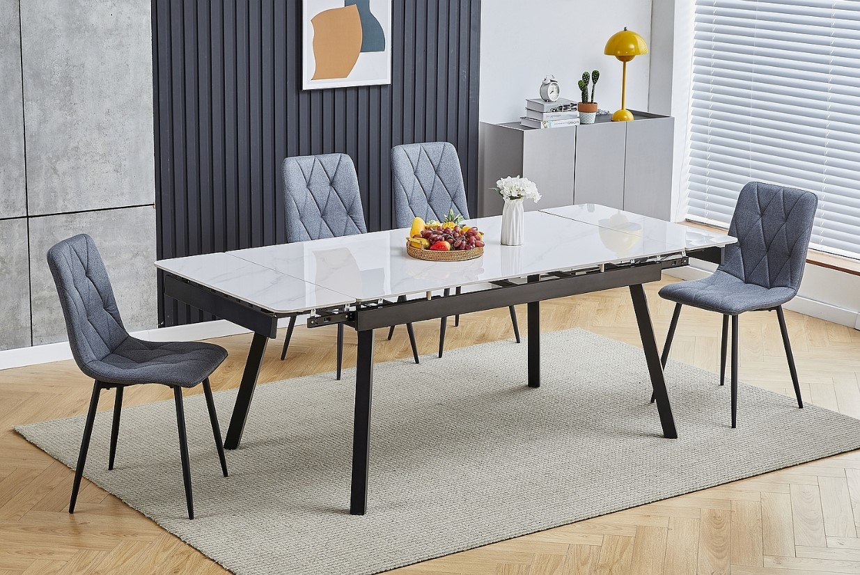 Стол обеденный «HALMAR EMILIO» белый мрамор/черный, 120/70/76