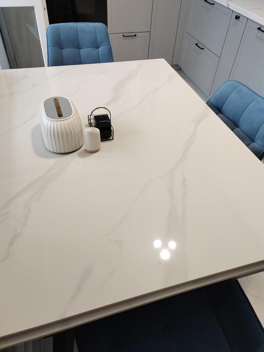 Материалы: каркас изготовлен из металла, столешница — из керамики. Прочные и долговечные материалы обеспечивают надёжность и устойчивость стола.