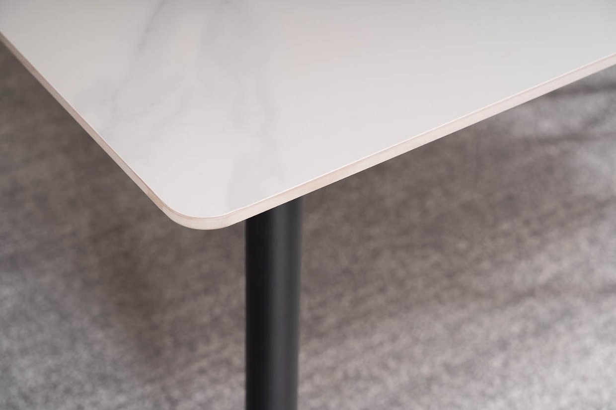 Стол Signal Rion — это удобный и современный выбор для домашнего интерьера. Его столешница керамики выдерживает температуры до 450°C, что делает его идеальным для повседневного использования и размещения горячих предметов. Столешница имеет закругленные углы, что не только придает ей более мягкий и безопасный вид, но и делает стол более дружелюбным к детям и безопасным в быту, минимизируя риск травм от острых углов.
