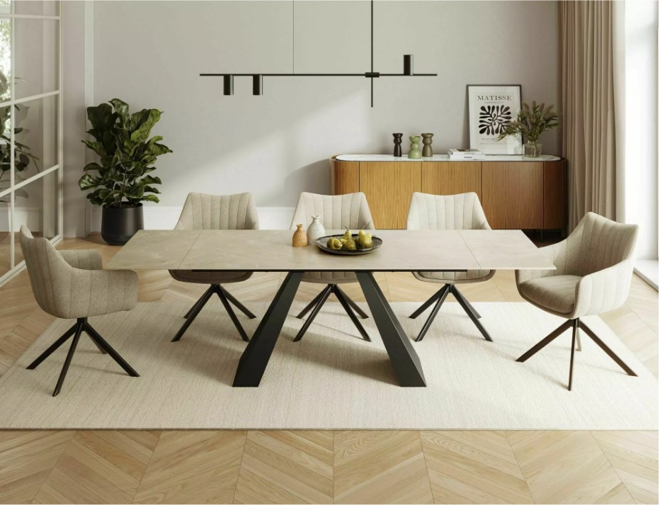 Стол обеденный «SIGNAL SALVADORE» Ceramic Diamond Cream кремовый/черный мат 160-240/90