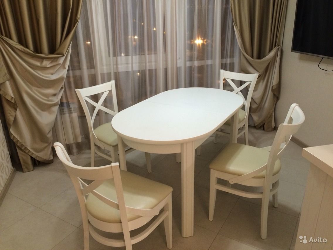 Столешница: крашенный МДФ. Изогнутые ножки из массив дуба. Система разложения «бабочка».