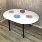 Столешница крашенная (МДФ), основание и ноги из натурального дерева в лаке.
