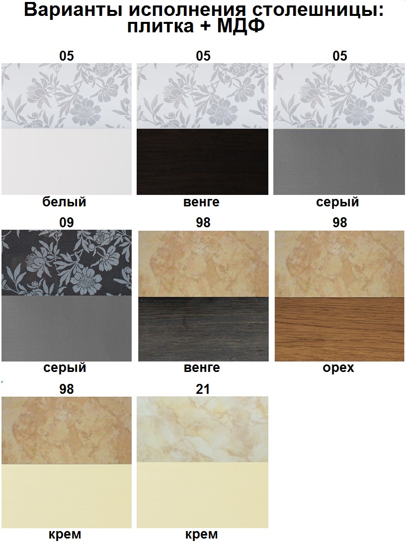 Цвет плитки: согласно обазцам (05, 09, 98, 21)