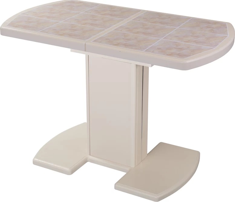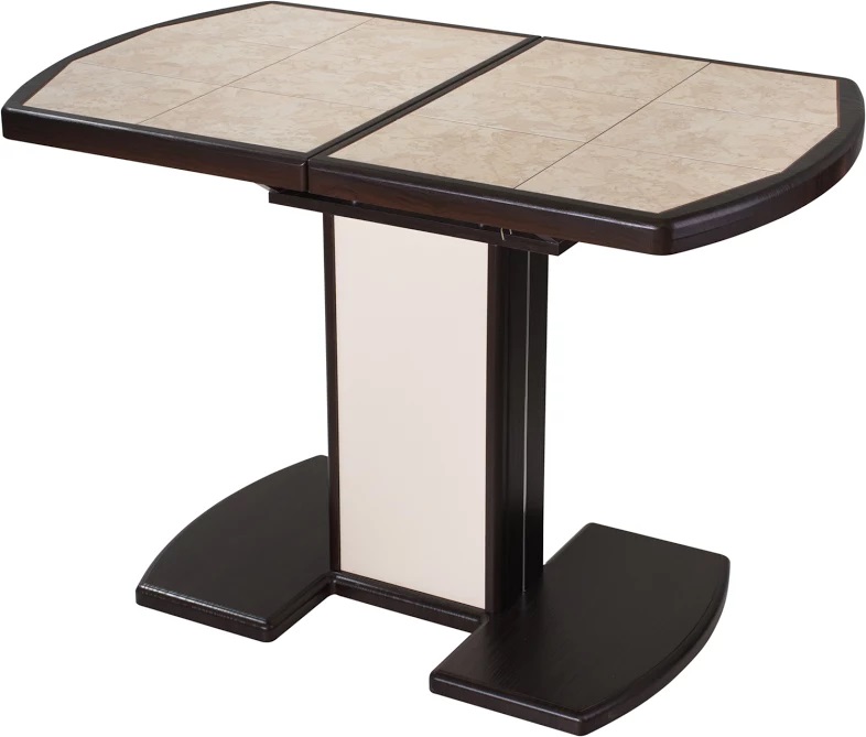 Стол раскладной кухонный ШАРДИ ПО представляет собой сочетание надежности, практичности и красоты. Стол изготовлен из керамической плитки в сочетании с МДФ. Ноги могут быть представлены в двух вариантах: хромированная сталь либо МДФ с металлической вставкой. Полуовальная форма стола прекрасно подойдет как для небольшой кухни, так и для столовой. Стол оборудован надежным механизмом раскладки, который синхронно раскладывает стол. Стол имеет множество сочетаний расцветки плитки и МДФ.