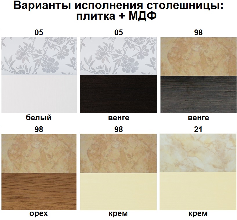 Материал: столешница - ламинированный МДФ + керамическая плитка;