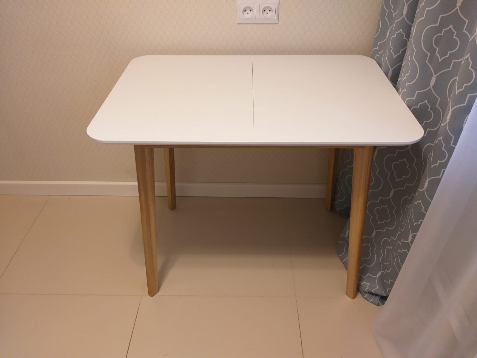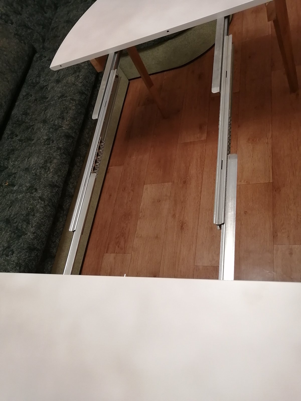 Благодаря механизму для безцарговых столов, его можно разложить как полностью на 80 см, так и частично на 40 см.
