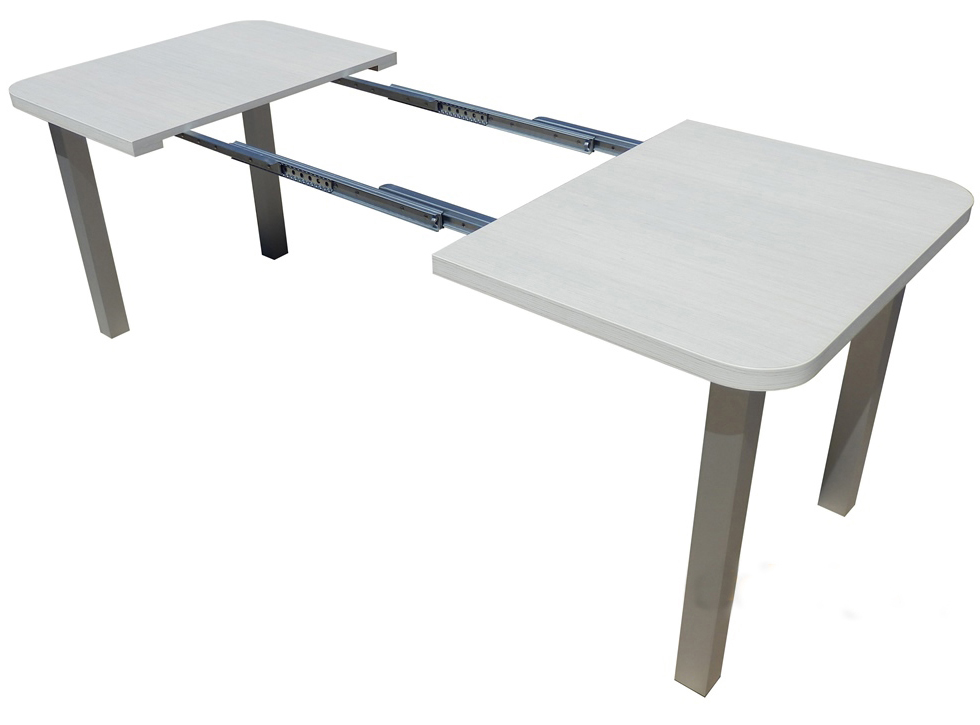 Обеденный раздвижной стол «Слим» выполнен из материалов высокого качества (ЛДСП). С помощью двух дополнительных вставок (по 400 мм каждая) стол увеличивается по длине. Механизм раздвижения достаточно прочен и долговечен. Конструкция в разложенном виде способна выдержать нагрузку до 80 кг.