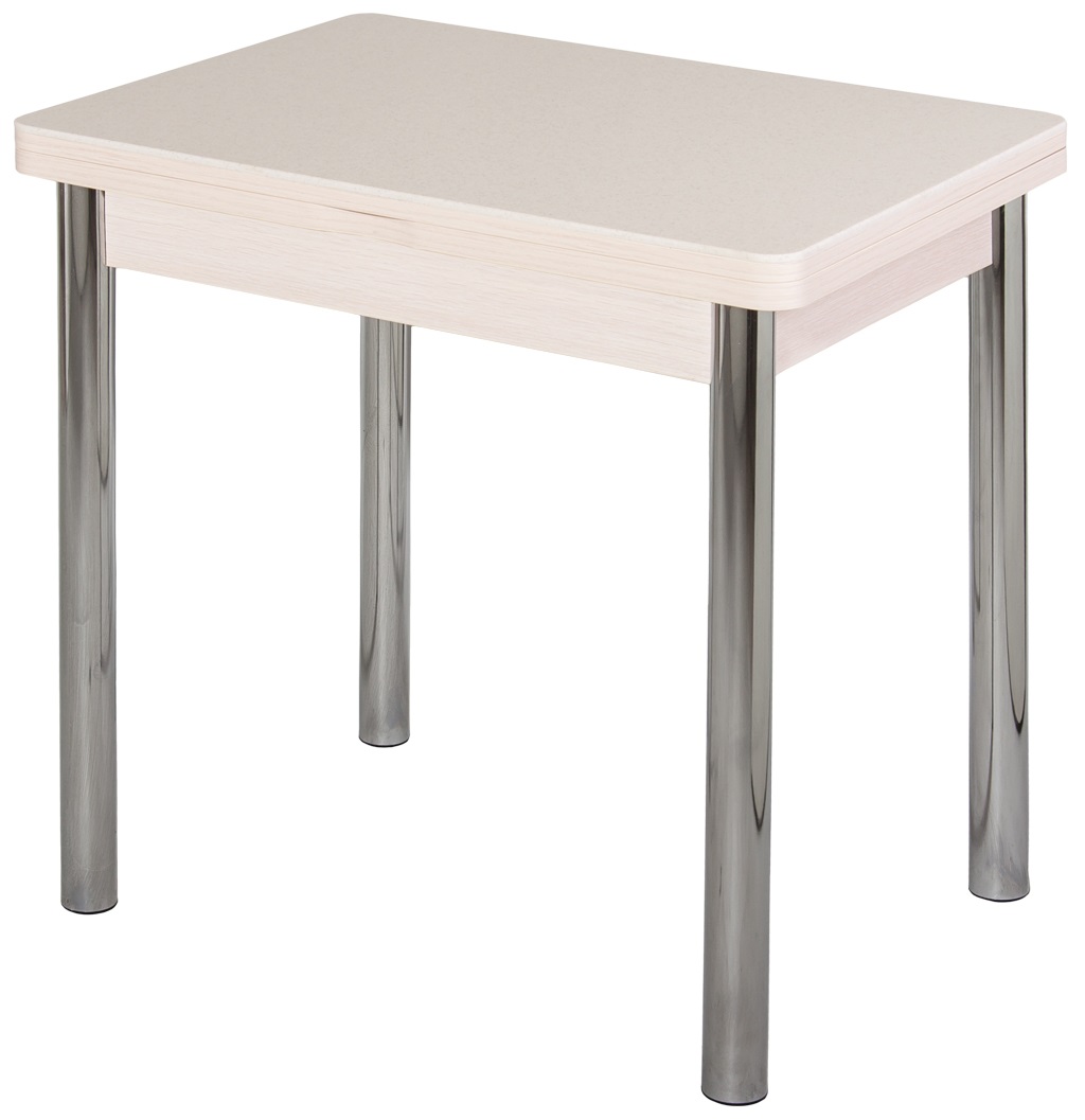 Стол «Реал М-2 КМ» характеризуется компактными размерами, он не требует большой площади для размещения, что делает его практичным. Простой раскладной механизм превращает эту модель в комфортную обеденную зону для всей семьи. Металлические опоры имеют строгую прямую форму.