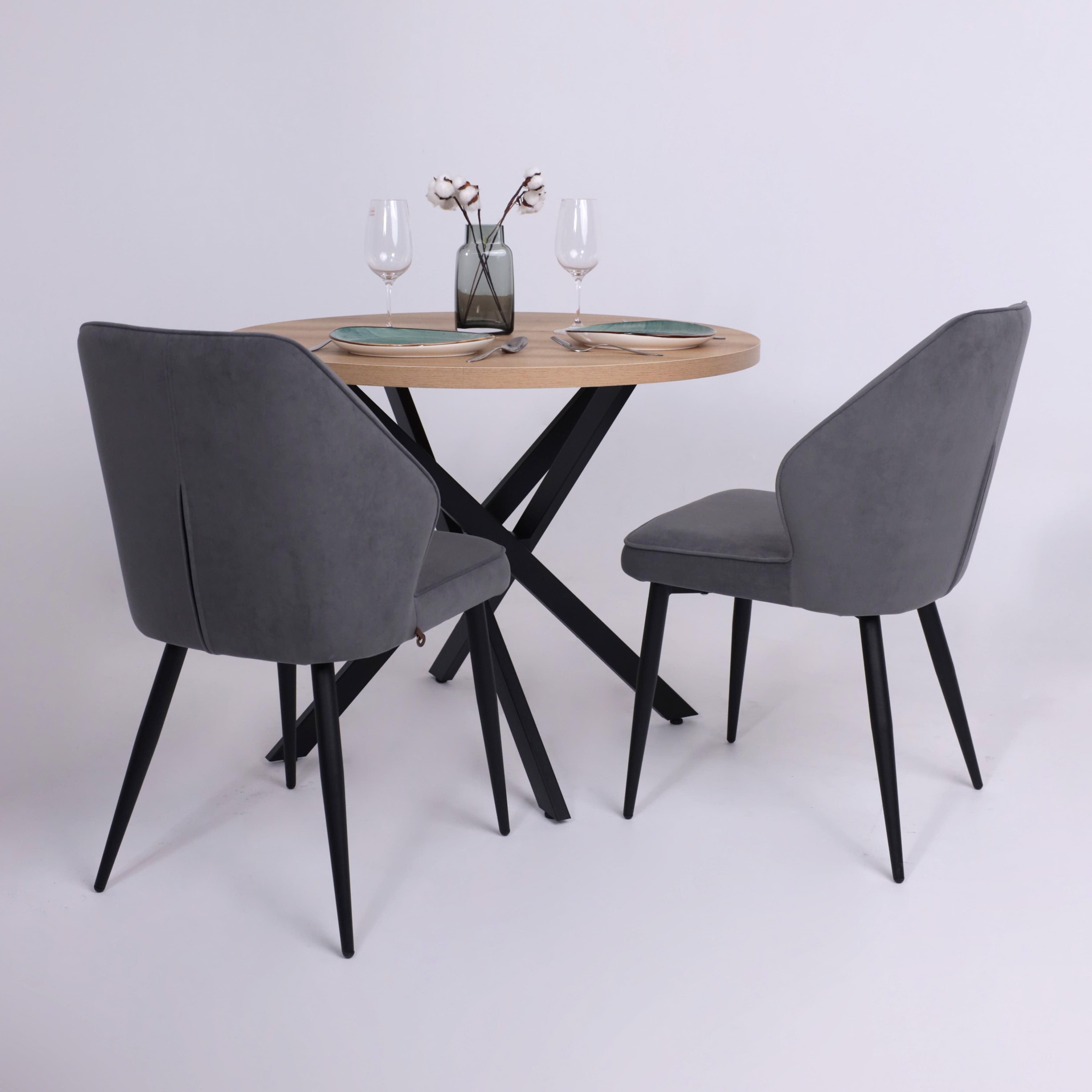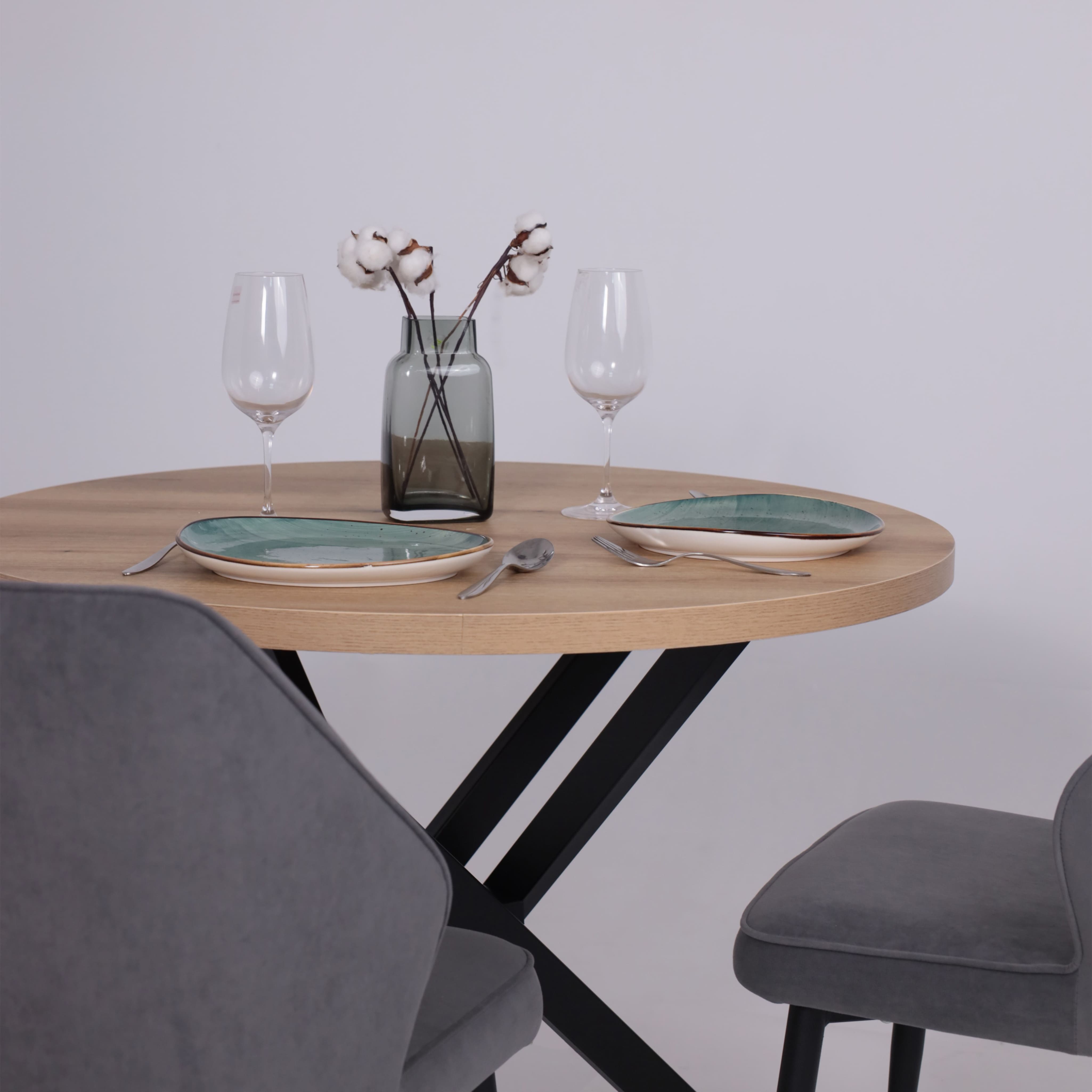 Стол «РИГА» D950, Дуб Сильверджек Ореховый/Черный