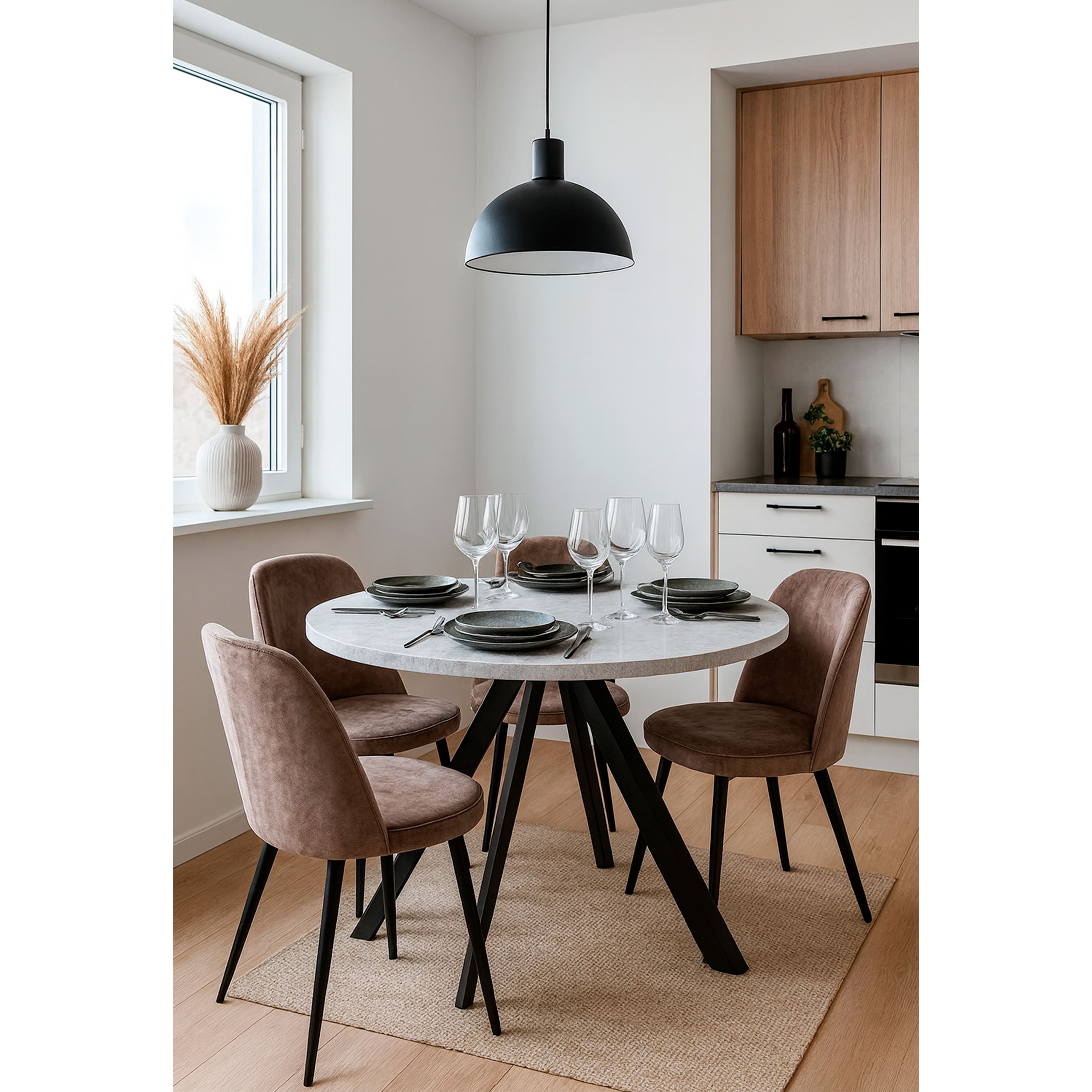 Стол «RONALDO-120» круглый раздвижной 120(160), ДЫМЧАТАЯ КЕРАМИКА/Черный
