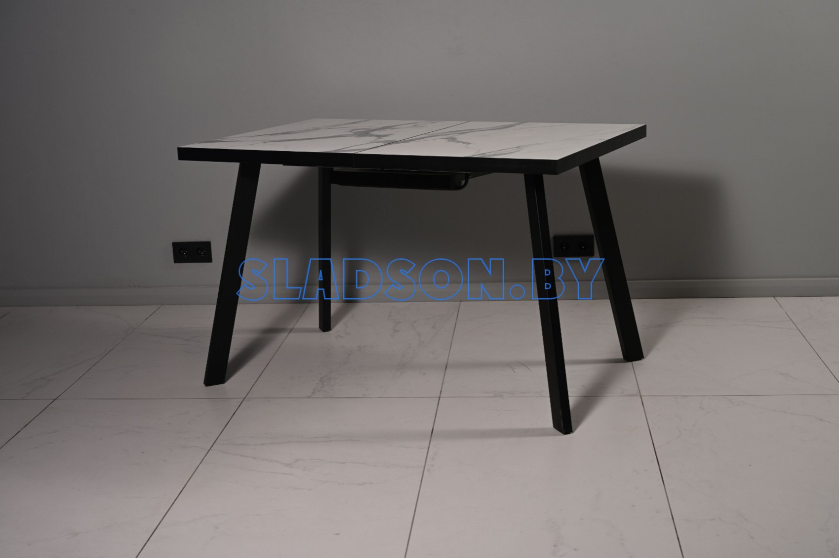 Стол обеденный «HALMAR EMILIO» белый мрамор/черный, 120/70/76