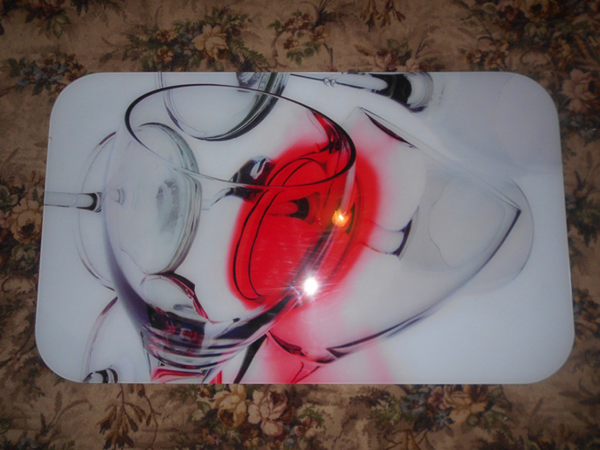 Современный стол со стильной фотопечатью станет одним из главных украшений на вашей кухне. На выбор предлагается множество вариантов: стакан виски с кусочками прозрачного льда или же тарелочка с мороженным, украшенным фруктами и ягодами.