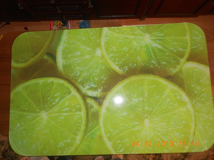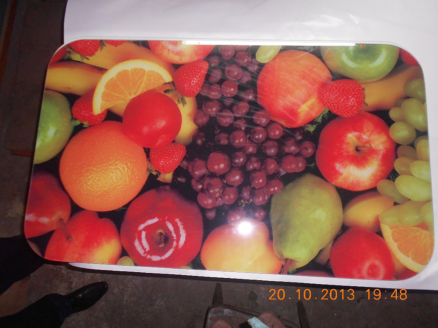 Ударопрочная столешница изготовлена из ЛДСП и термостойкого стекла. Края столешницы слегка закруглены, что делает мебель совершенно безопасной при эксплуатации. Комплектация хромированными опорами. Декор ярким рисунком.