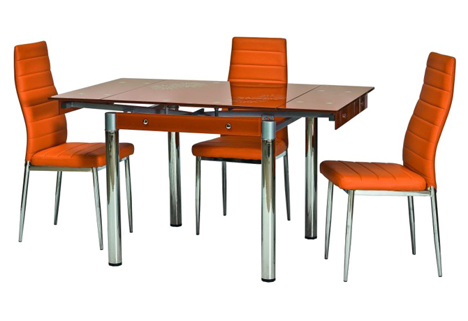 Стол-трансформер отличается красочным дизайном. Широкий спектр предлагаемых цветов поможет вам выбрать идеально подходящий к вашему интерьеру. Опоры изготовлены из металла, столешница – из закаленного стекла.