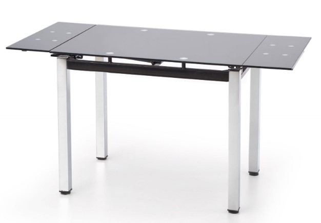 Стол стеклянный раскладной может быть черного либо молочного цвета. Стол отлично подойдет для маленькой кухни, выполненной в современном стиле. Механизм раскладки до 142 см может вместить более шести персон. Ноги из хромированной стали.