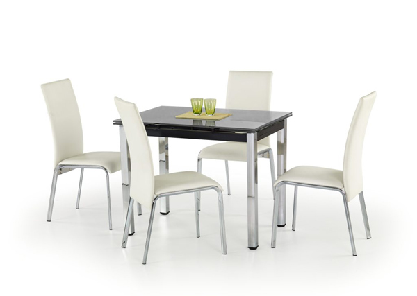 Стол-трансформер «Logan» обладает простым механизмом раскладки. Опоры выполнены из металла и отличаются повышенной прочностью, столешница изготовлена из закаленного стекла.
