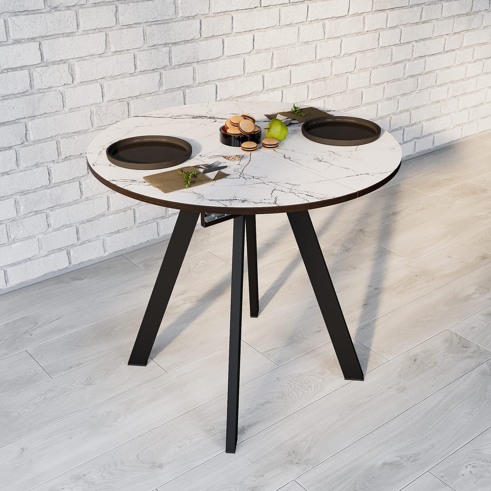 Стол «МЕХИКО» пластик премиум 3Д, D950, Камень белый/ Черный матовый