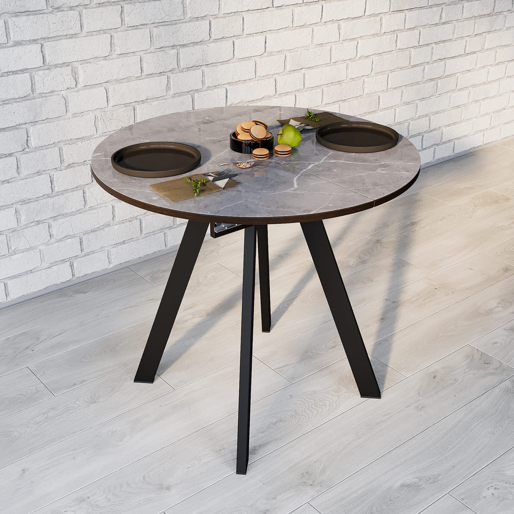 Стол «РАУНД» керамика 2 кат. Д 1100, Камень белый Elyt pulido/ Черный матовый