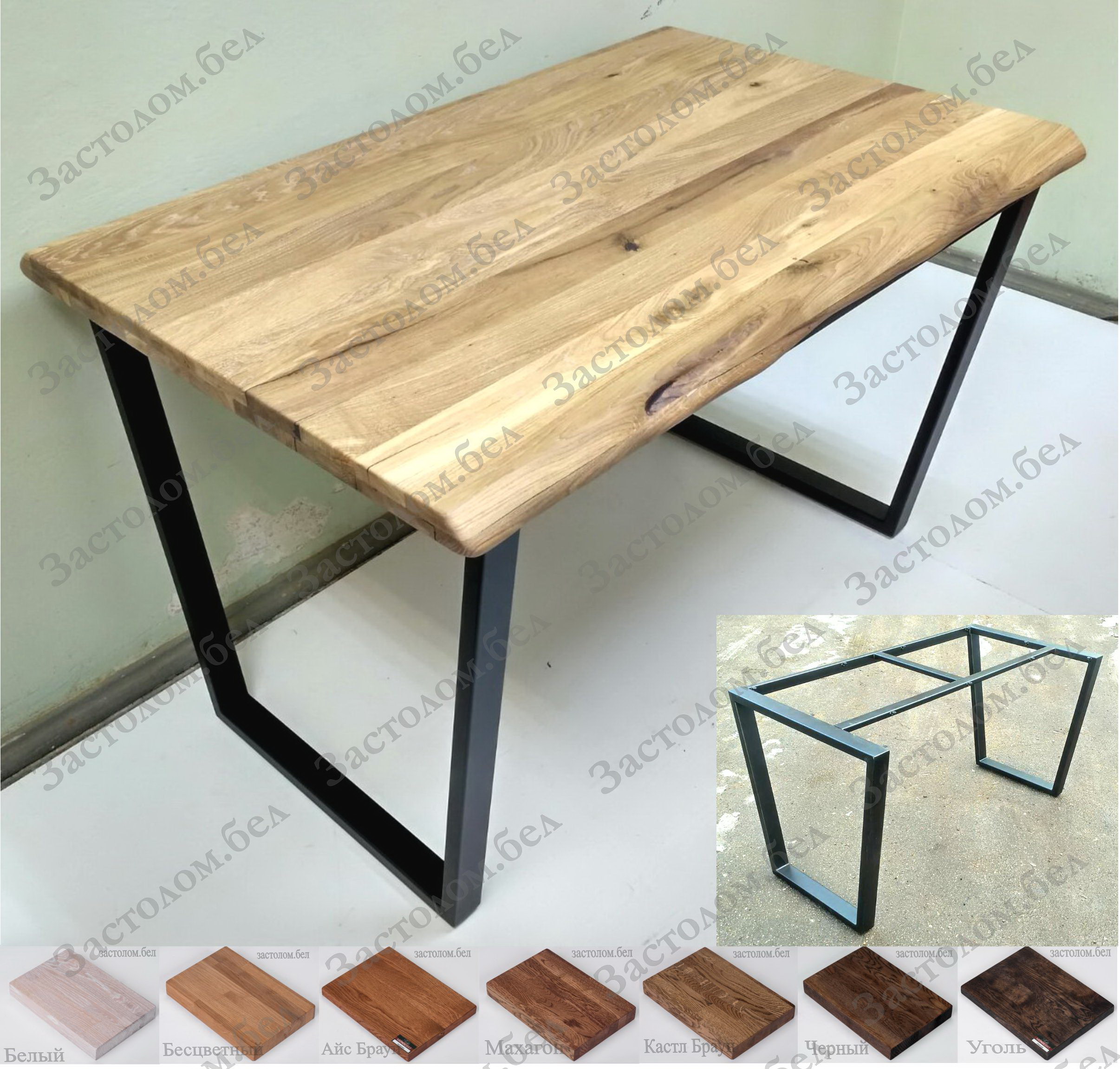 Деревянный ЦЕЛЬНО и ШИРОКО ламельный стол из дуба с ЖИВЫМ КРАЕМ на металлическом подстолье серии V