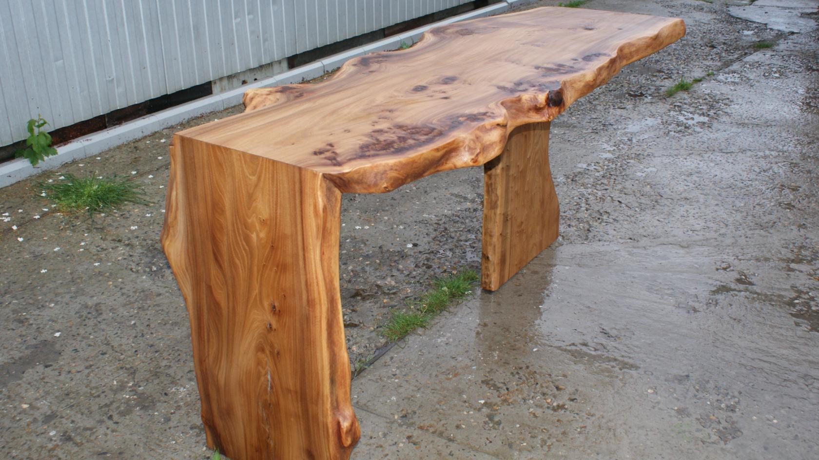 Оригинальный деревянный столик станет прекрасным дополнением для существующей обстановки загородного дома. Столешница модели выполнена из цельного спила ствола дерева. Контур столешницы повторяет контур определенной древесной породы. Для защиты от механических повреждений на поверхности изделия нанесен специальный лак.