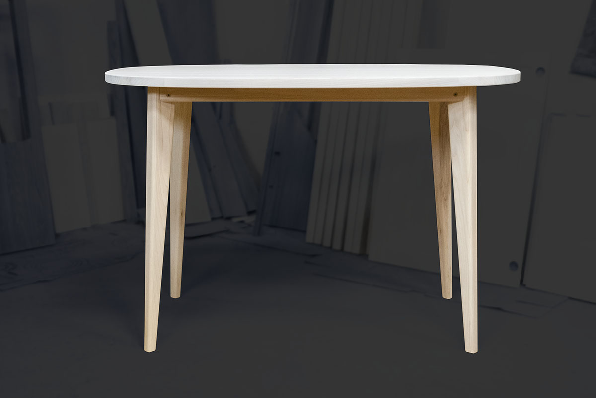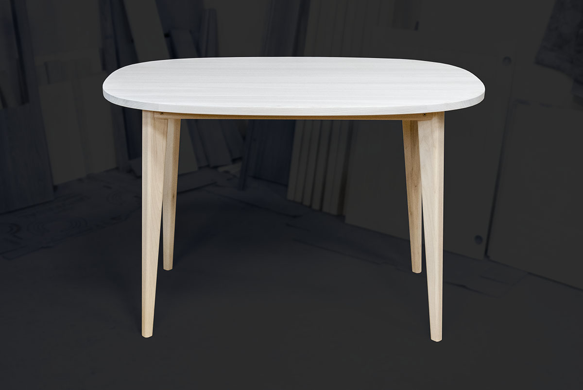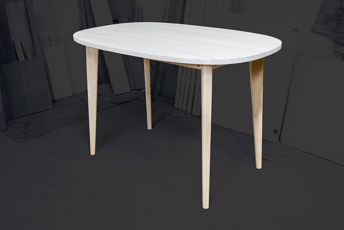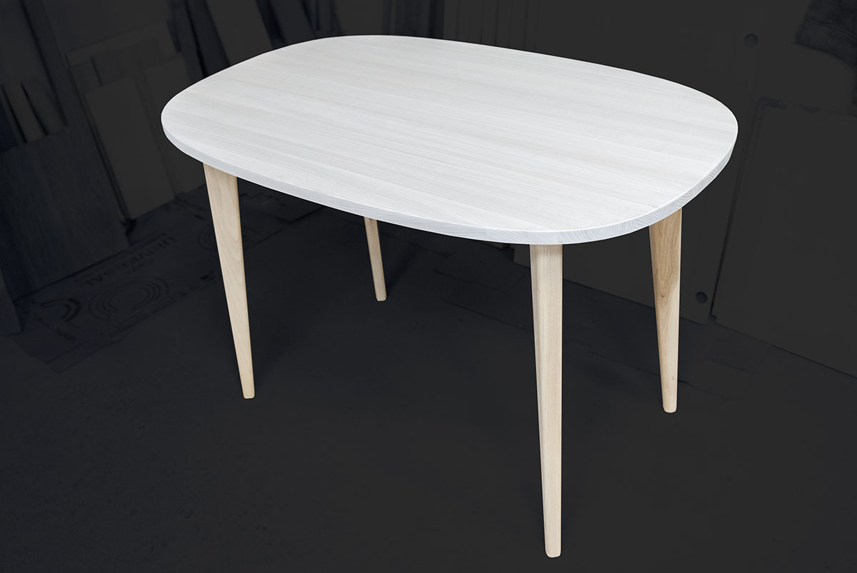 Лёгкий и изящный, вместительный, но не занимающий много места овальный стол производится из 100% массива ясеня. Двухцветное покрытие делает стол оригинальным и поможет вписать его в ваш интерьер. Увеличенное пространство для ног под столешницей, при стандартной высоте, а также скруглённые кромки всех элементов придают столу необычный парящий вид и максимальный комфорт.