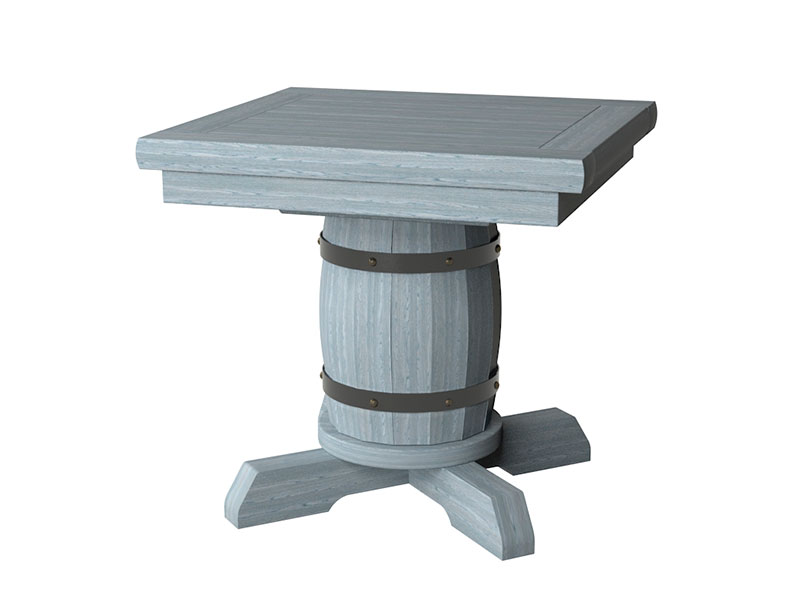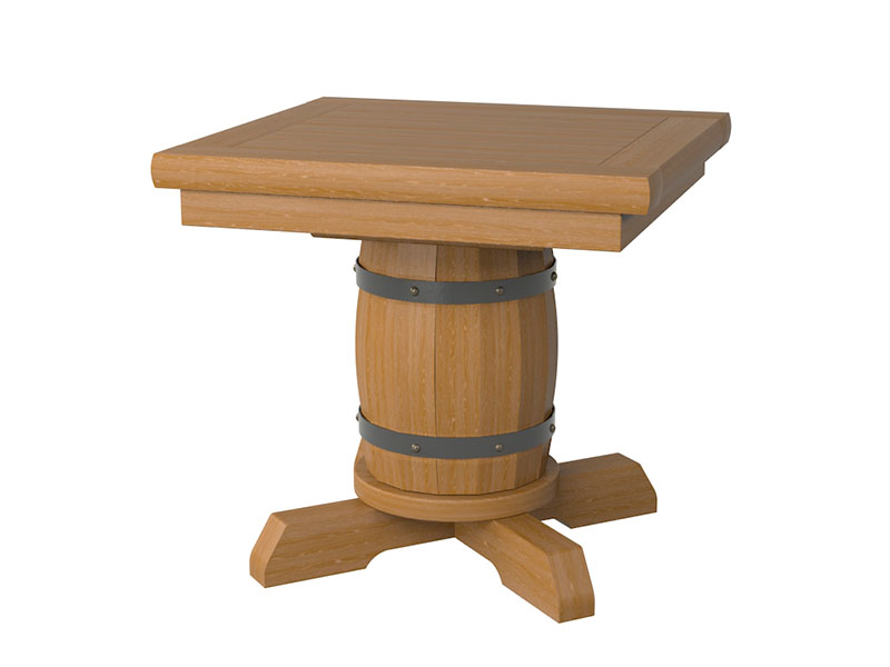 В качестве ноги используется декоративная бочка с металлическим ободами и клепками.