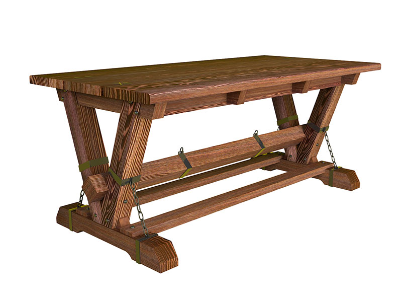 Размер: 1170х770 мм. Стол со столешницей из спилов сосны и ели.