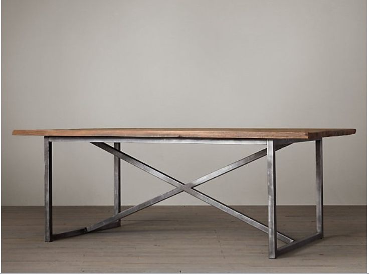 Стол из массива дуба с живым краем на цельносварном подстолье серии V лофт