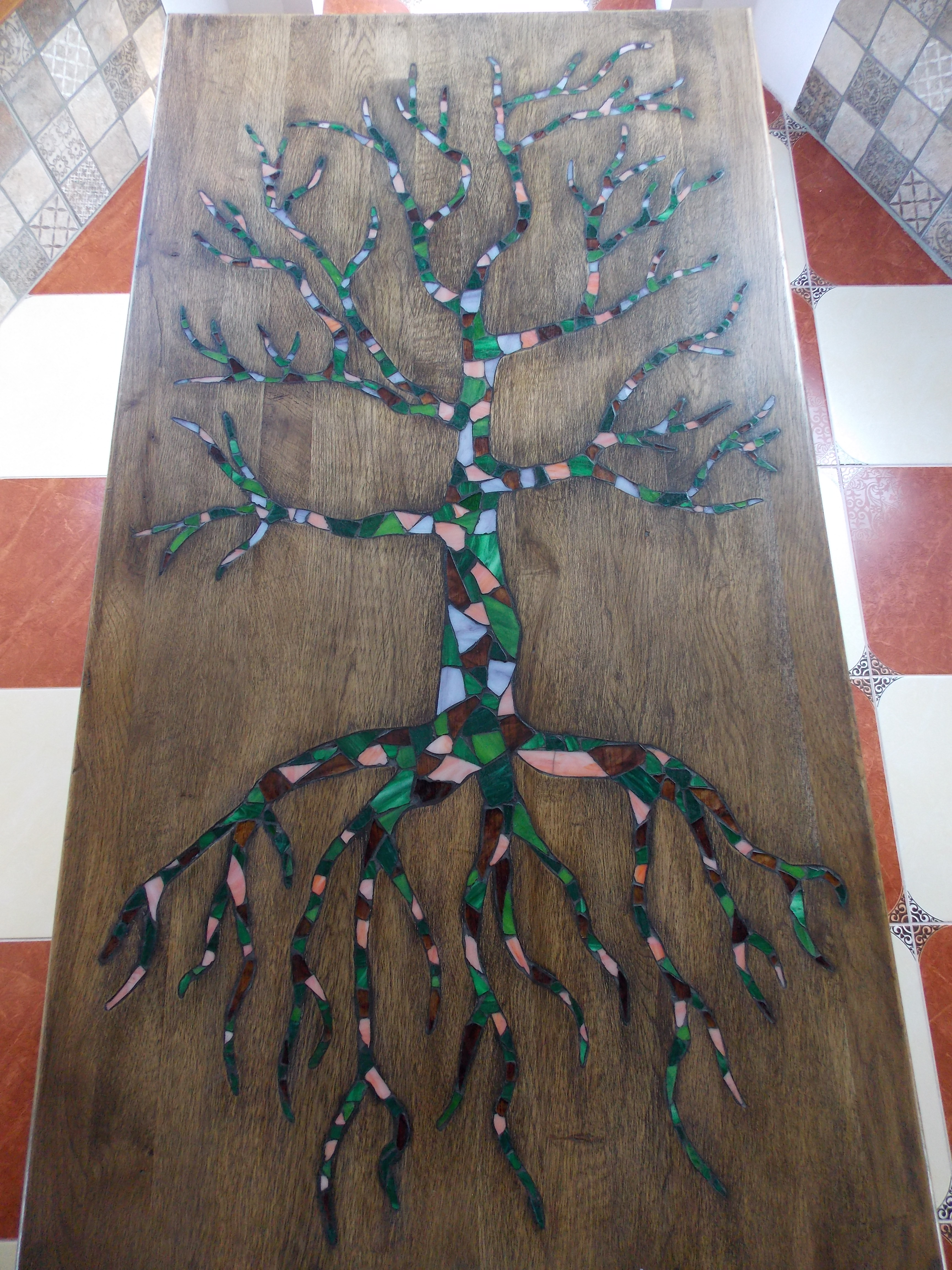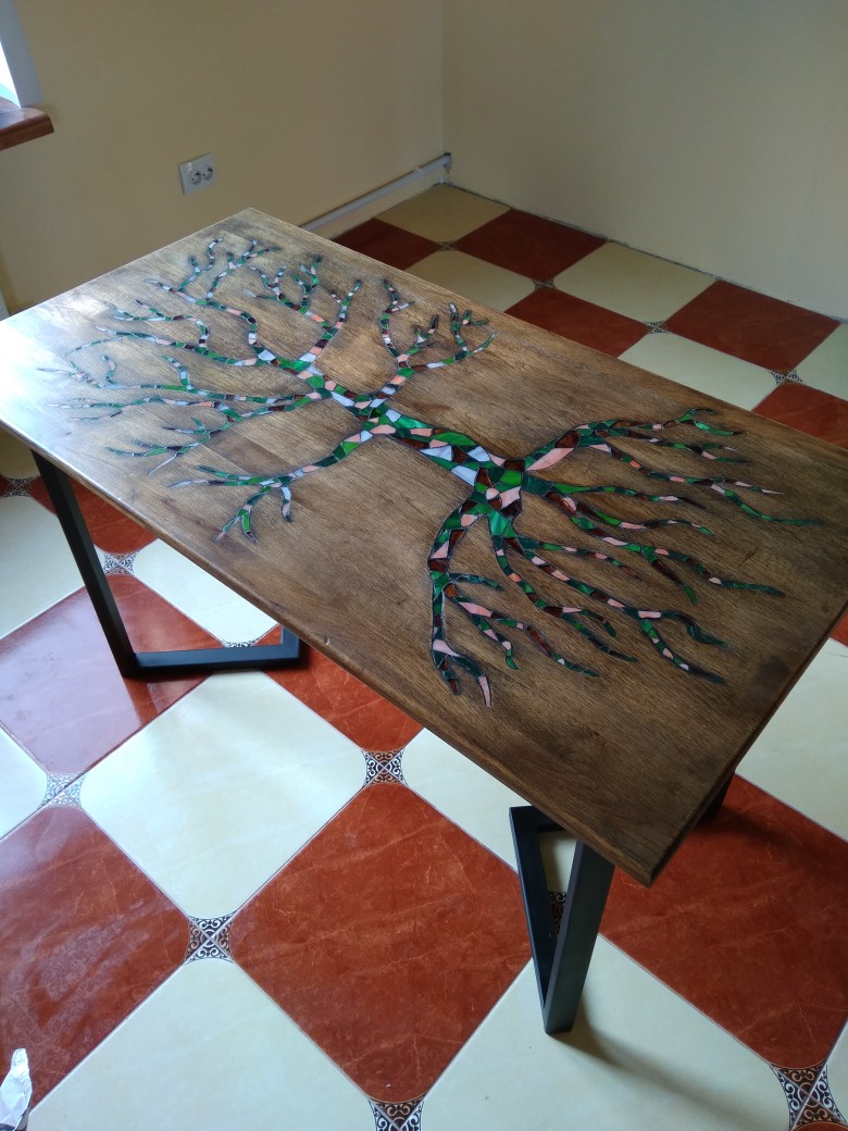 Стол из массива дуба с мозаикой из стекла