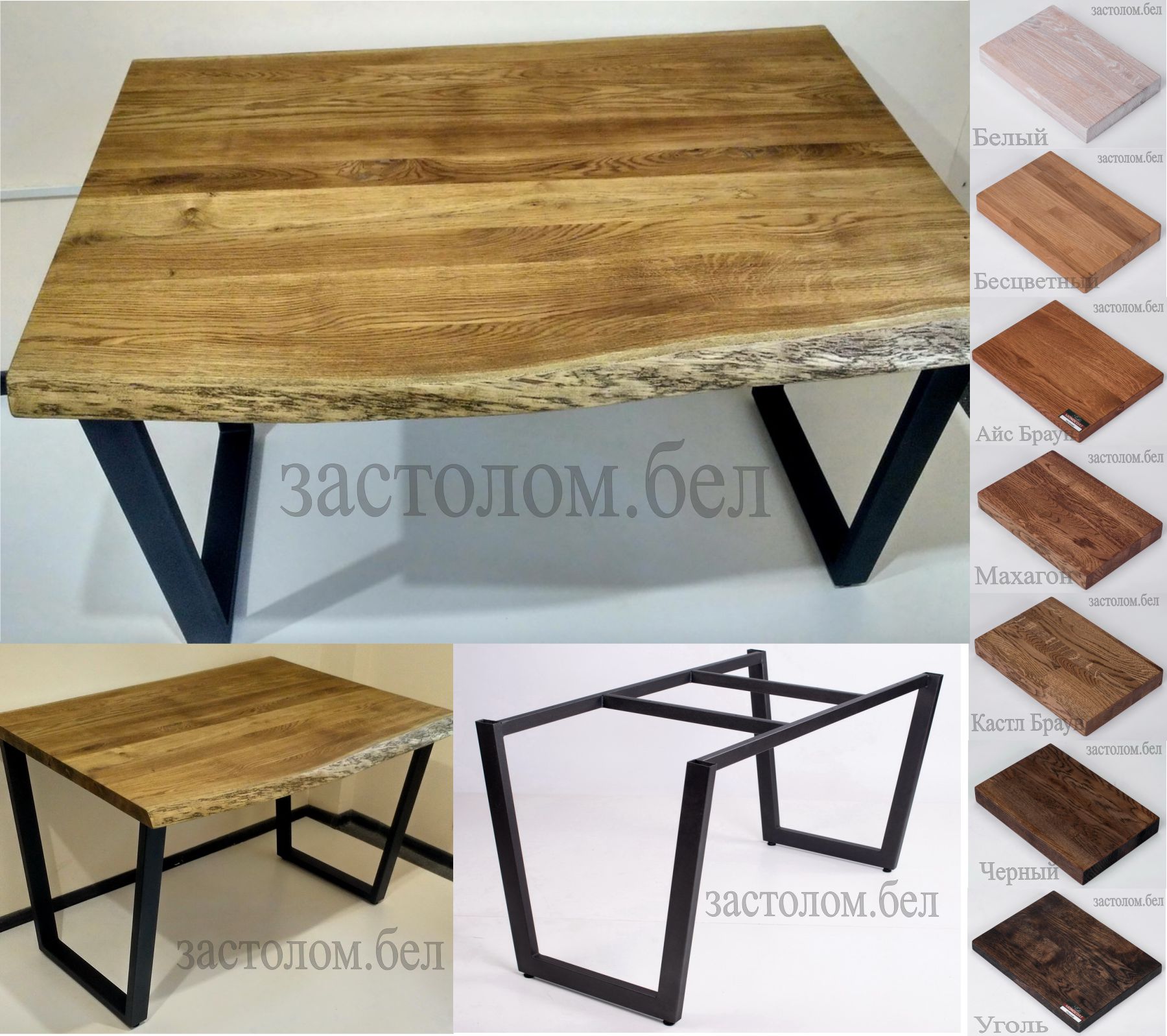 Стол из массива дуба с живым краем на цельносварном подстолье серии V лофт