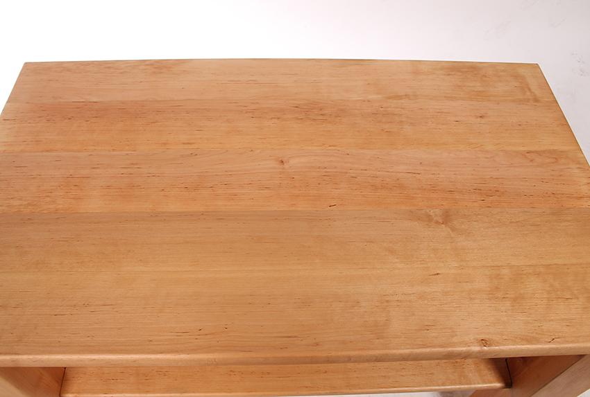 Компактный столик из массива оснащен удобной полочкой для мелких предметов. Древесина, являющаяся материалом изготовления стола, позволит модели даже при постоянной эксплуатации не утратить свои характеристики и презентабельный внешний вид.