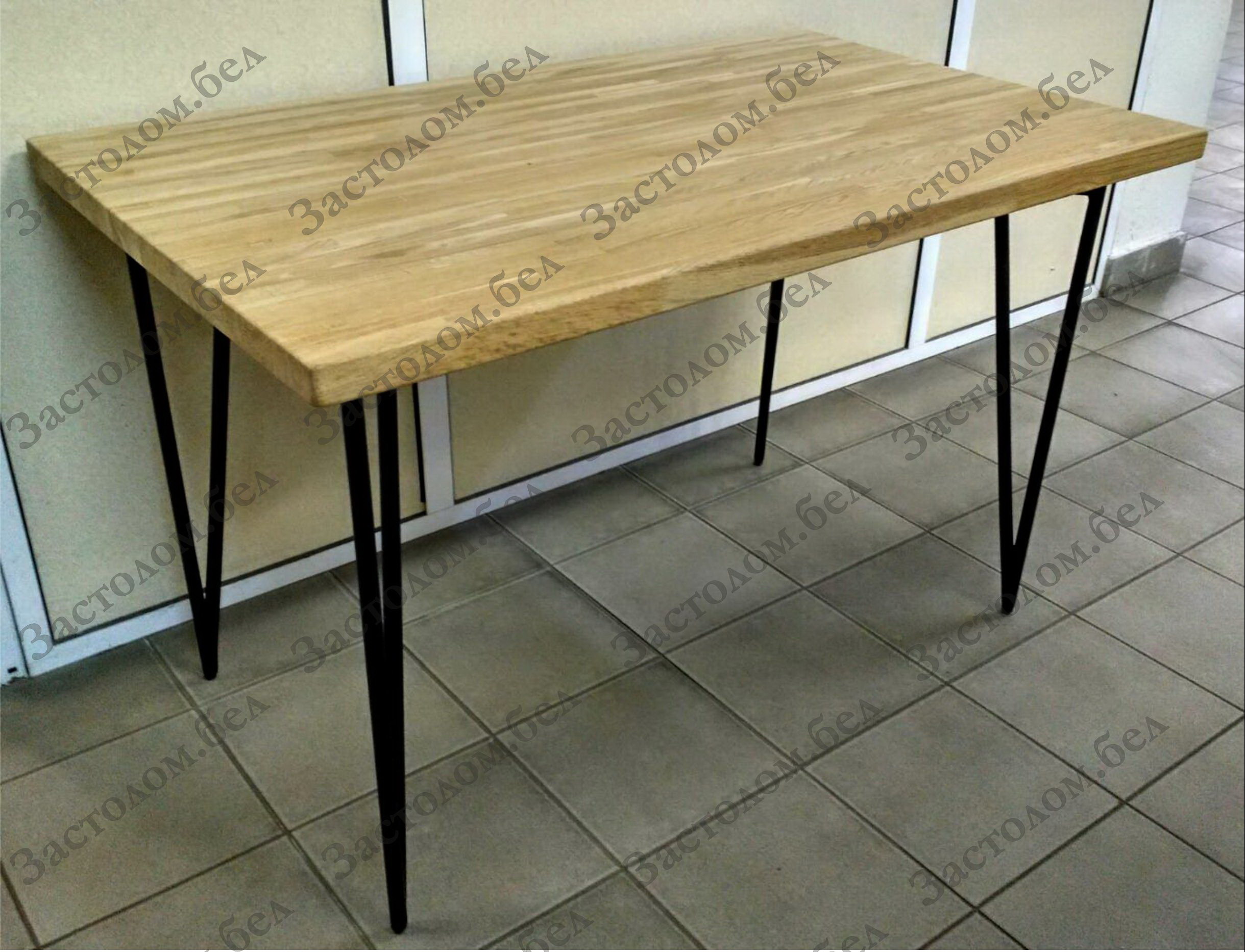 Деревянный ЦЕЛЬНО и ШИРОКО ламельный стол из дуба с ЖИВЫМ КРАЕМ на металлическом подстолье серии V