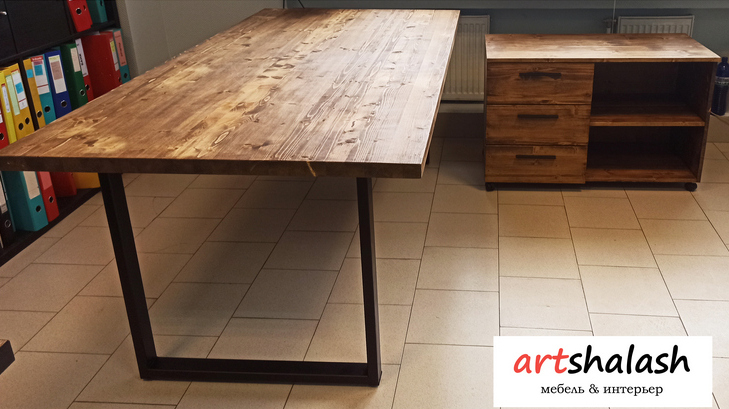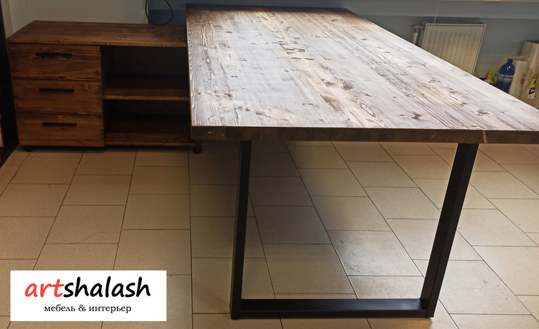 Стол из МАССИВА ЯБЛОНИ на цельносварной раме